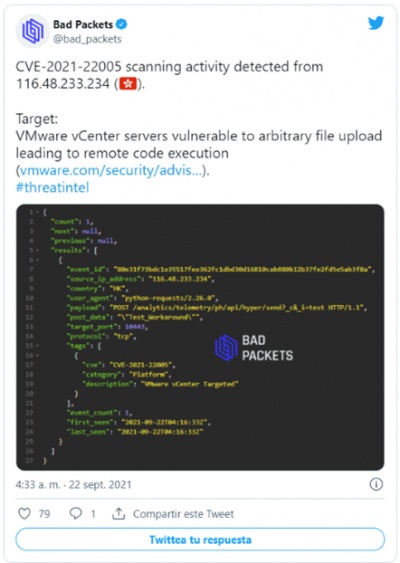 En julio de este año se dio un escenario similar con la CVE-2021-21985, otra vulnerabilidad crítica en vCenter Server y que a los pocos días de conocerse se detectó actividad en la red en busca de servidores vulnerables. De hecho, la CVE-2021-21985 ha sido utilizada en ataques de ransomware para intentar obtener acceso inicial.