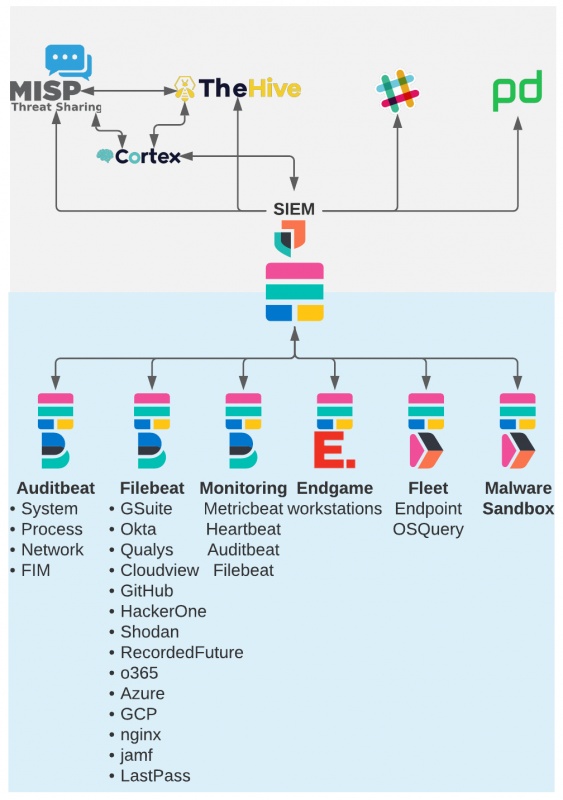Muchos productos de ciberseguridad y controles de seguridad están diseñados para admitir una "red corporativa" tradicional con estaciones de trabajo y servidores en una red local, protegida por un firewall. Cuando se dispara una alerta y necesita realizar análisis forenses en un host, va físicamente al sistema para volcar la memoria y obtener una imagen del disco duro. En Elastic no somos una empresa "tradicional" por diseño, por lo que el equipo de Infosec tiene que ser innovador y flexible para asegurar Elastic sin intentar forzar a la empresa a meterse en un molde "en nombre de la seguridad". Afortunadamente, Elastic Stack es la solución perfecta para esto.