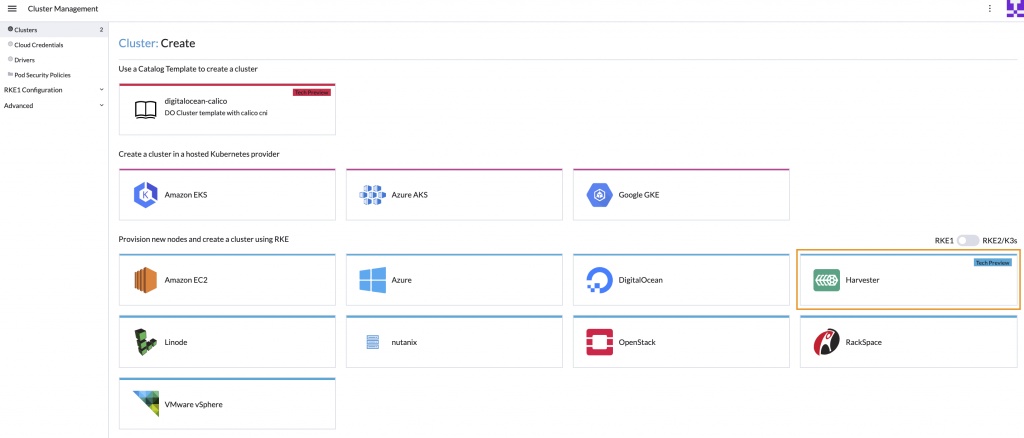 Con la GA de hoy, uno de los hitos más importantes que ha logrado el equipo de ingeniería de Harvester este año es la integración de Harvester en la consola de SUSE Rancher.