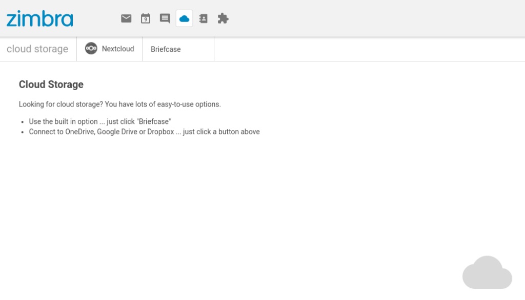 Antes de instalar el Zimlet, se necesitan 2 clics para ir al Maletín.